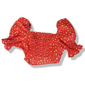 H&M Junior Puff Sleeve Crop Top Red Floral Shirt Boho Top Summer Resort wear