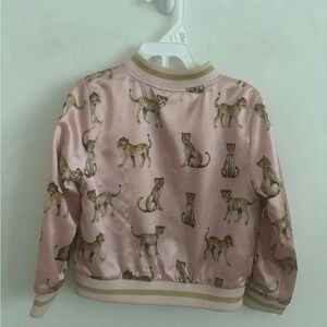 H&M KIDS SATIN BOMBER JACKET PINK CHEETAHS PRINT 3-4 year