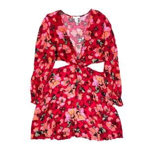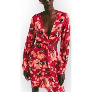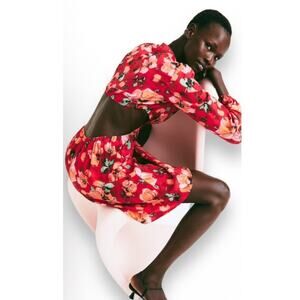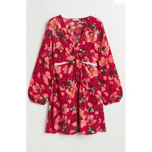 H&M Floral XL Knot-Detail Cut-Out Woven Balloon Sleeve Dress Artsy Romantic