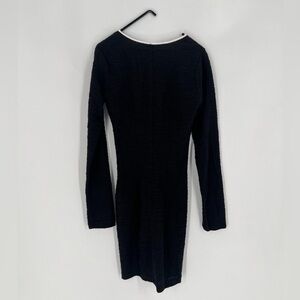 H&M Keyhole Detail Textured Boucle Deep V Long Sleeve Dress