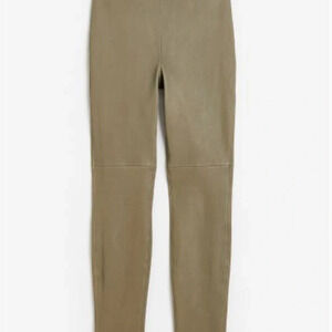 H&M Khaki Green Sage 100% Genuine Leather Leggings Pants Sz US 6 Eu 38 RRP $329