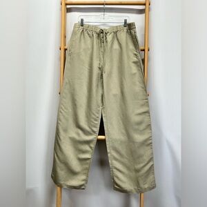 H&M Khaki drawstring waist Linen blend wide leg pants size L.