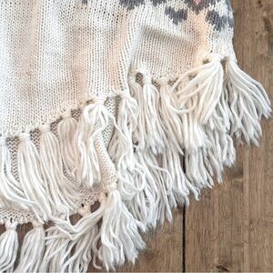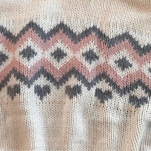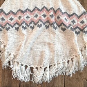 H&M Kid Knitted Turtleneck Poncho Shawl Cream Pink Gray Hearts Diamond / Size M