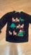 Cozy black sweater. Features festive reindeer and sleigh design. Perfect for holiday fun.