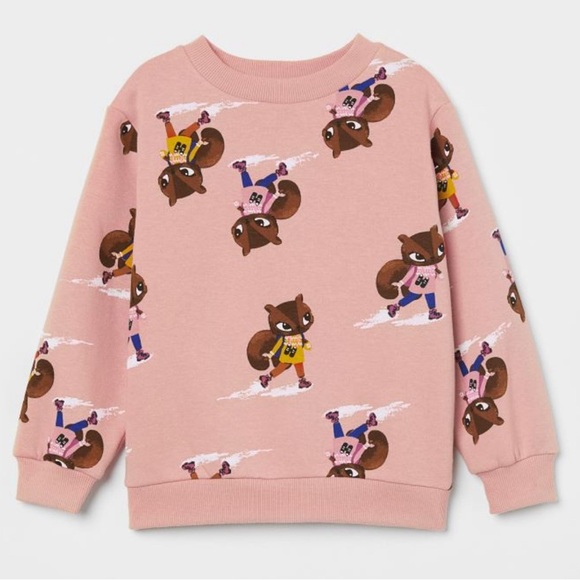 H&M Kids Crew Neck Powder Pink Printed (Squirrels) Sweatshirt | Size 5 -6 Y