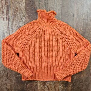 H&M Knit Sweater Womens Small Orange Cropped Turtleneck