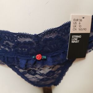 H&M LACEY RUFFLE BLUE THONG SIZE 6 NWT