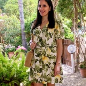 LINEN BLEND H&M BUTTON DOWN FLORAL LEMON PUFF SLEEVE SUMMER SUNDRESS