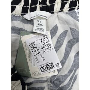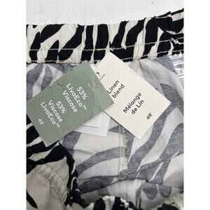 H&M LINEN-BLEND BOTANICAL PULL-ON PANTS IN BLACK AND WHITE. SIZE XL NWT