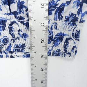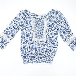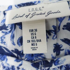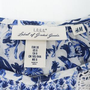 H&M LOGG Blouse Top Women's Size 6 Blue/White Floral Floral Round Neck Pullover