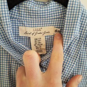 H&M LOGG Blue Check Buttondown Short Sleeve Shirt