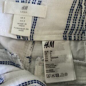 H&M L.O.G.G. Cotton High Tie Waist Shorts Sz 2 Blue & White Striped #146K
