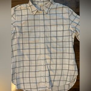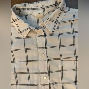 Cozy meets classic in this H&M L.O.G.G. long sleeve button-down! Featuring a soft cream base with a sleek black windowpane plaid, this shirt gives off effortless fall vibes while staying timeless for year-round wear. Lightweight and easy to layer — perfect for chilly mornings, office days, or casual weekends.