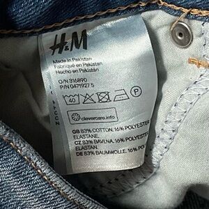 Classic H&M L.O.G.G. denim pencil skirt in size US 4 (EUR 34). Light-to-medium wash with five-pocket styling, high-rise fit, and mini pencil cut. Soft cotton-blend denim (83% cotton, 16% polyester, 1% elastane) with a touch of stretch for comfort and movement.