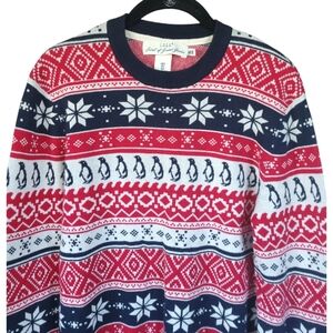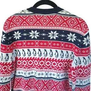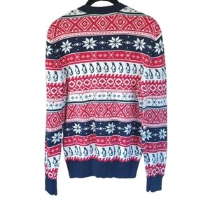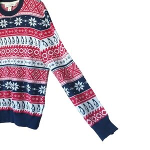 H&M LOGG Fair Isle Penguin Snowflake Sweater Sz S Red Navy Festive Nordic Knit