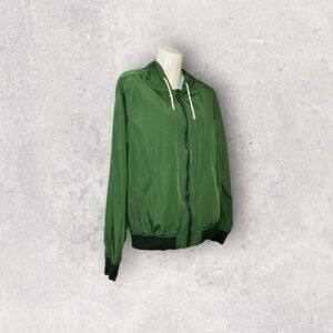 H&M L.O.G.G. Jacket Mens Small Green Hooded Full Zip Lightweight Windbreaker