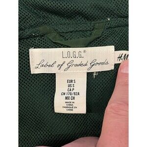 H&M L.O.G.G. Jacket Mens Small Green Hooded Full Zip Lightweight Windbreaker Condition: Gently worn, no visible flaws Shell: 84% polyester, 16% cotton Lining: 100% polyester mesh body and hood lining Color: Green with black ribbed cuffs and hem Features two front zip pockets, adjustable drawstring hood, ribbed cuffs and waistband, and full zip closure Tag size: Small (Mens) Made in China Great casual jacket for layering or outdoors