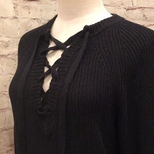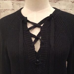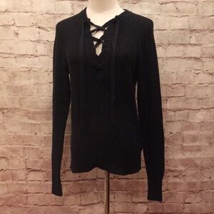 H&M LOGG Label of Graded Goods Womens Black Lace-Up V Neck Sweater Size XS