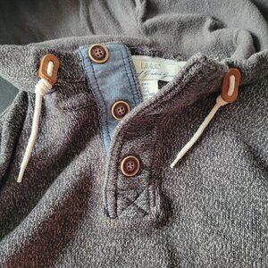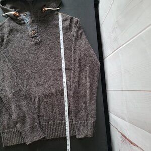 H&M LOGG Men’s L Hooded Knit Sweater, 100% Cotton, Front Pockets, Quarter Button Down, Gray, Like New, EUC