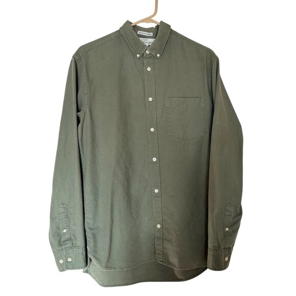 H&M L.O.G.G. Men's Olive Green Button-Up Shirt Regular Fit 100% Cotton Size Medium