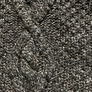 H&M L.O.G.G. Metallic Cable Knit Sweater Women’s XS Gray. Crewneck. Long Sleeve. Dark gray with gold metallic woven in the knit. Preowned, in goo condition. 45% wool, 27% acrylic, 20% polyamide, 5% polyester, 3% metallized fiber.