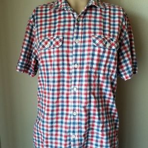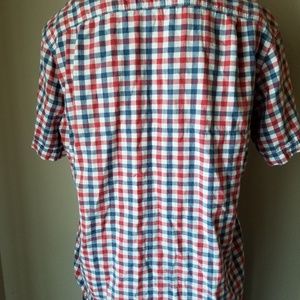 H&M LOGG men's red plaid short sleeve button up casual shirt