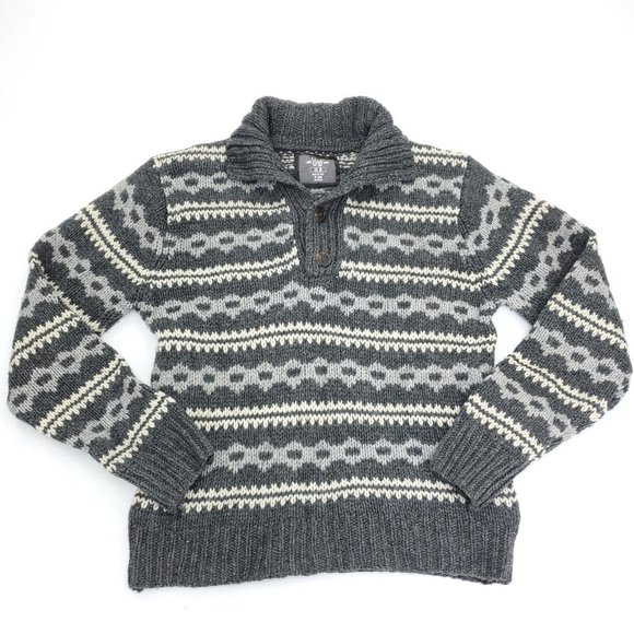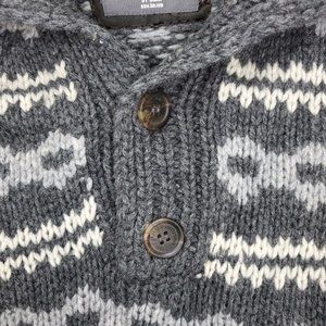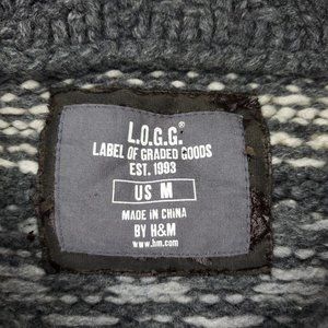 H&M LOGG Sweater Men Medium Gray White 1/4 Button Hand Knitted Pullover Wool