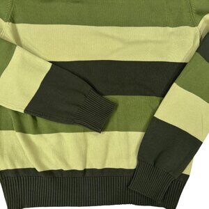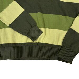 H&M L.O.G.G. Sweater Mens XL Green Stripe Crewneck Pullover 100% Cotton Knit