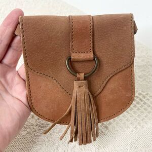 Grab this H&M Label of Graded Goods Tan Leather Tassel Mini Crossbody Bag today!