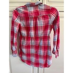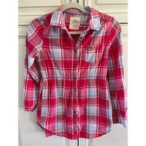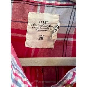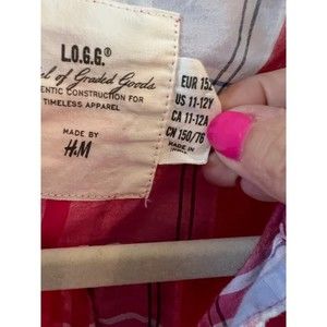 H&M LOGG Top Shirt Youth Girls 11-12 Red and Blue Collared Button Up Tunic