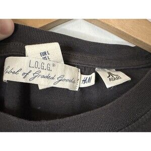 The H&M Label of Graded Goods Atari T-shirt in size Large is a solid faded black cotton T-shirt with a crew neck and short sleeves. It is machine washable and made from knit fabric. This regular fit T-shirt is perfect for men who enjoy a vintage-inspired look with a modern twist. Manufactured in Bangladesh, this 2020-2029 year design is ideal for the summer and spring seasons.