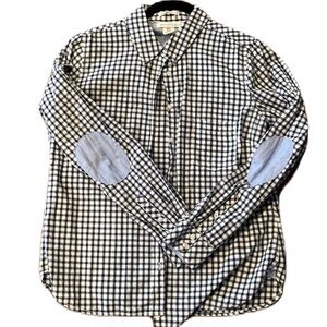H&M Label of Graded Goods L blue and white fitted button down shirt Leigh light blue sleeve patches