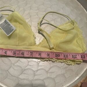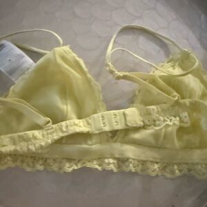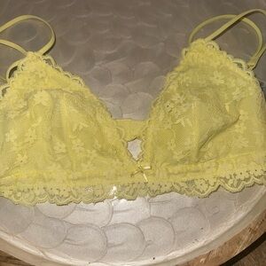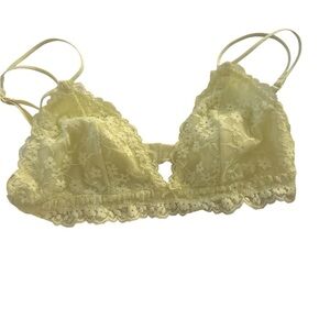 This pretty & girlie H&M bralette features a delicate floral lace design in a soft cream color, offering a romantic and vintage-inspired look. With its unlined triangle cups and thin spaghetti straps, it provides both comfort and style for everyday wear. Worn once. Can add pads if needed. Measurements in photos.