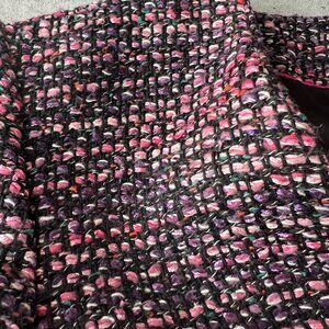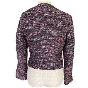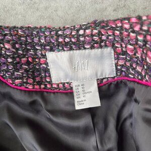 H&M Ladies 10 Med Blazer Wool Blend Fitted V-Neck Crop Zip Jacket Multi Tweed