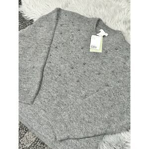 H&M Ladies Charcoal Beaded Soft Polyester Knit Sweater Size Large NEW