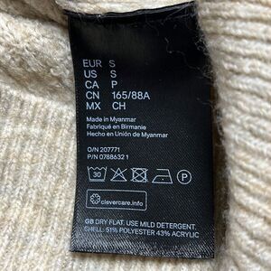 H&M Ladies Cropped Ballon Sleeve Turtleneck Sweater Oatmeal Heather Stretch Knit