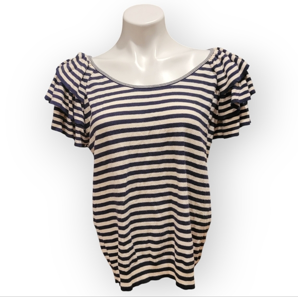 H&M Large Ruffle Sleeve Striped Sweater