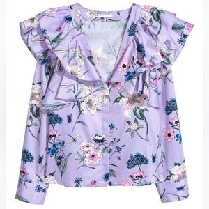 H&M Lavender Purple Floral Blouse with Ruffle Details