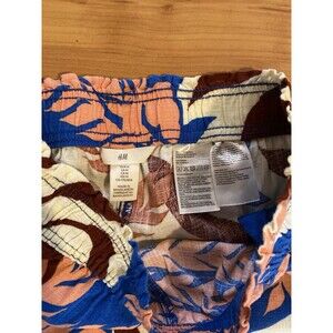 H&M Leaf Print Pants Size M Linen Viscose Blend Elastic Waist Beachy Coastal