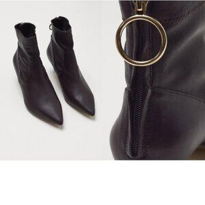 H&M Leather Ankle Boots in Eggplant/Oxblood Red size 38 EU / 7.5-8 US