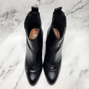 H&M Leather Pointed Toe Black Ankle Boots Booties Women's Size 37 (US 6)