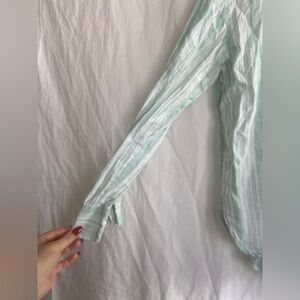 Elevate your style with this mint green striped shirt. Perfect for any occasion, this shirt offers a blend of comfort and elegance. 100% linen