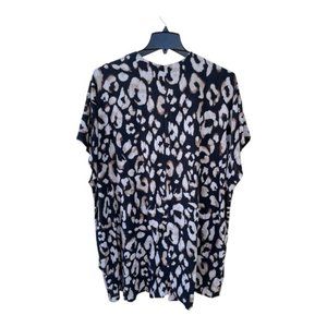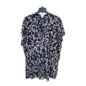 Stylish print above knee dress/kaftan blouse. Features a mix of black, white, and tan colors. Perfect for casual or formal wear or beach cover-up. 50% Lyocell, 50% Viscose Rayon-Machine wash Size XL Preowned in good condition. No rips or stains.
