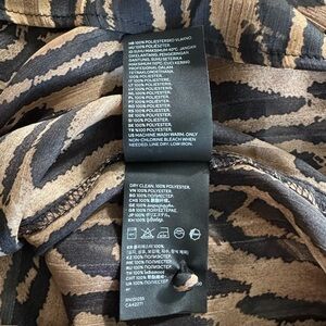 H&M Leopard Print Pattern Blouse Light Brown Crepe Sheer Long Sleeve Size Small