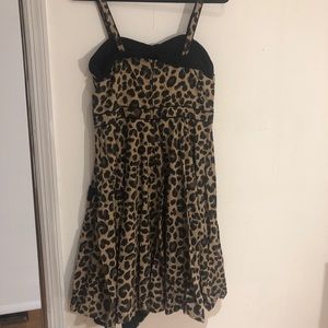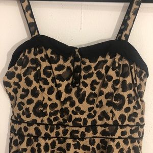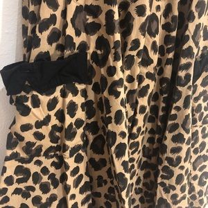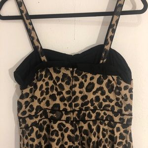 Pinup style swing dress with leopard print and pockets! Straps are adjustable. Missing tag inside but fit is a Large. Skirt length goes to just below the knee.