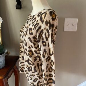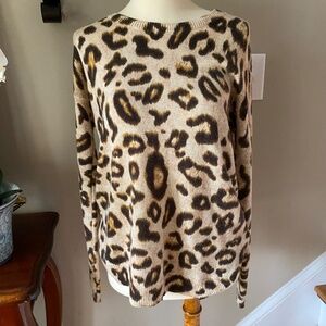 H&M Leopard Print Crew Neck Wool Blend Knit Sweater Back Zipper Pullover size S