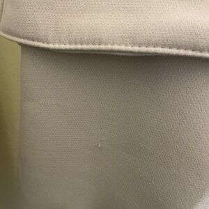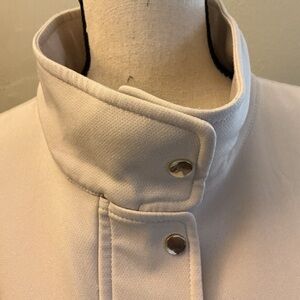 Stylish utility jacket with a drawstring waist. Features front pockets and a high collar. Ideal for versatile wear. It has a slight snag on the right side under the pocket. PTP 24” Length 34” model is for styling/fit only