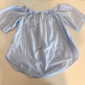 Elevate your style with this elegant light blue off-shoulder top. Perfect for casual outings or a day at the office. Enjoy the soft 100 % cotton fabric and loose flattering fit. Great for hot summer. Good used condition