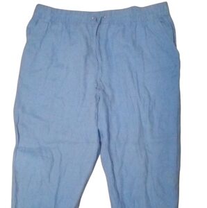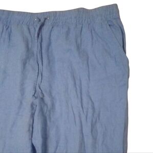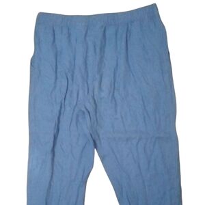 H&M Light Blue Pull On Drawstring Waist Straight Leg 100% Linen Pants Size XL