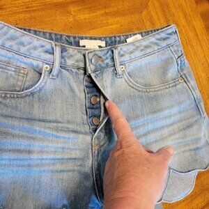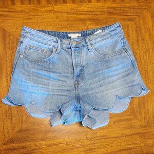 H&M Light Blue Scalloped Button Fly Denim Shorts